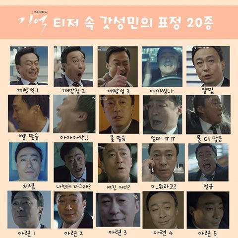 tvN 새 금토드라마 '기억' 측은 9일 오후 공식 페이스북에 "'기억' 티저 속 박 변호사 표정 20종. 갸는 깨방정이었슈"라는 글과 함께 이성민의 다양한 표정을 담은 사진을 게재했다.