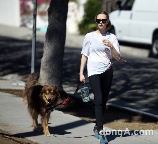 [할리우드DA:다] 아만다 사이프리드, 반려견과 산책 ‘굴욕 없는 몸매’