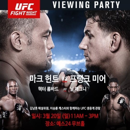 종합격투기단체 UFC가 오는 20일, 홍대에 위치한 예스24 무브홀에서 UFC 파이트 나이트 브리즈번: 헌트 vs 미어 경기를 맞아 팬들과 함께하는 뷰잉 파티를 개최한다고 밝혔다.