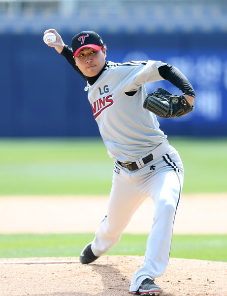 김종호와 박민우는 지난해 87도루 201득점을 합작한 리그에서 가장 빠른 테이블세터였다. 나성범∼테임즈∼박석민은 지난해 성적 기준으로 무려 101홈런에 391타점을 올렸다. 특히 김종호부터 테임즈까지는 모두 좌타자라. 이날 LG 선발로 등판한 잠수함투수 우규민(31·사진)에게는 몹시도 까다로운 타선이었다. 6번으로 넘어가도 베테랑 이호준에 7번은 다시 좌타자 이종욱이었다.