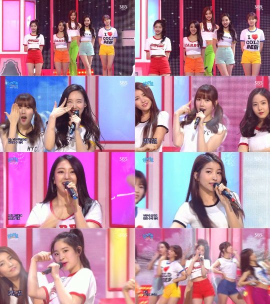 두 걸그룹은 컬러풀한 스키니진과 핫팬츠 의상을 맞춰 입고 경쾌한 안무를 소화했다. 이들은 대선배 소녀시대 못지않은 상큼한 매력과 비주얼로 깊은 인상을 남겼다.