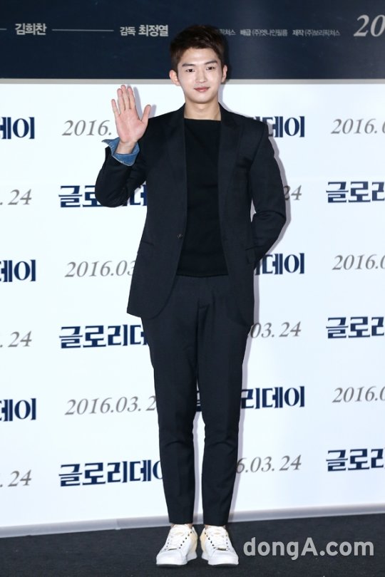 배우 김희찬이 14일 오후 서울 성동구 왕십리CGV에서 열린 영화 ‘글로리데이’ 언론시사회에 참석해 포토타임을 하고 있다.