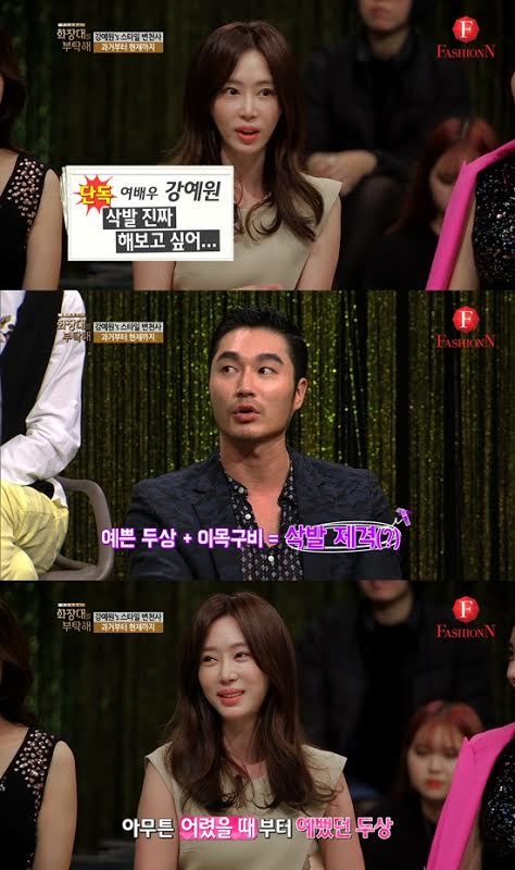 이날 방송에서 강예원은 솔직하지만 엉뚱한 매력으로 스튜디오를 사로 잡을 예정이다. MC와 패널들은 다양한 스타일을 무리 없이 소화해 내는 강예원에게 “삭발을 해도 예쁠 것 같다”며 감탄을 표했고, 강예원은 “어릴 때부터 두상이 예쁘다는 소리를 들어왔다”며 “한 번 머리를 밀어보고 싶다”고 답했다.