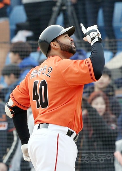 한화는 지난해 외국인타자로 재미를 보지 못했다. 그래서 올해는 현역 메이저리거를 영입했다. 도미니카공화국 출신의 윌린 로사리오(27)다. 역대 외국인타자 중 KBO리그 첫해 최고 몸값인 130만달러에 계약했다. 이제 27세에 불과한 데다 콜로라도의 주전 포수로 활약하던 2012년(28홈런)과 2013년(21홈런) 20개 이상의 홈런을 때려낸 경력을 지닌 타자여서 야구계 전체가 주목하고 있다. 로사리오는 왼쪽 햄스트링 부위가 다소 좋지 않아 스프링캠프를 마치고 입국한 뒤 서산에서 몸을 만들다가 13일 1군 선수단에 합류했다. 그리고 자신의 3번째 경기인 16일 대전한화생명이글스파크에서 열린 LG와의 시범경기에서 마침내 홈런포를 신고했다.