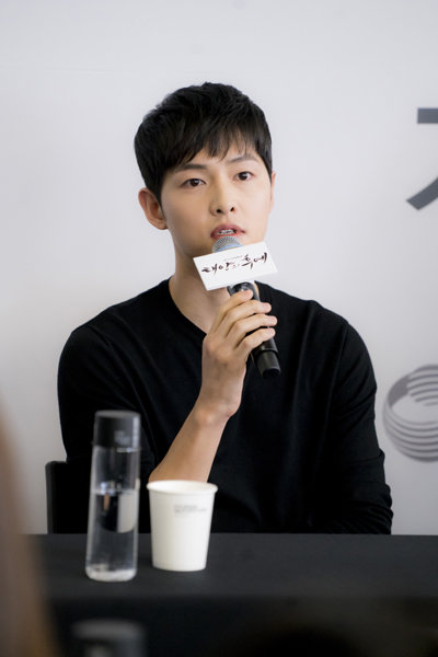 “시청자 입장에서 보고 있다”는 송중기는 “드라마는 하는데, 촬영을 하지 않아 어색하다”며 웃었다. 송혜교도 “수·목요일을 기다린다. ‘구·원커플’(진구·김지원)을 현장에서 잘 못 봐 TV로 보고 있다”고 했다. 진구와 김지원도 “지루하지 않게 보고 있다”, “재방송까지 챙겨보고 있다”며 시청자와 다르지 않음을 드러냈다. 이들은 드라마 인기요인으로 “빠른 전개와 로맨틱코미디 요소”를 꼽으면서 원작인 김원석 작가의 ‘국경 없는 의사회’에 공을 돌렸다. 송중기는 “군인과 의사와의 관계가 신선하기도 하지만 원작의 인류애가 클 것”이라고 했다. 송혜교는 “가벼울 땐 가볍고, 무거울 땐 확실히 무거운 밸런스가 좋다”고 설명했다. 송혜교는 세 살 아래 송중기를 두고 “굉장히 어린 척 했는데, 대화해보면 나 어릴 때 유행했던 것을 다 알고 있더라. 촬영장에서 ‘노인네 취급’을 받기도 했지만 송중기가 오히려 자주 아파, 몸 상태는 나보다 더 나이 먹은 것 같다”며 웃었다.