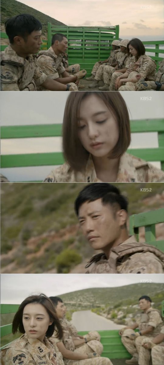 16일 밤 방송된 KBS2 ‘태양의 후예’(극본 김은숙, 김원석/연출 이응복, 백상훈/제작 태양의후예 문화산업전문회사, NEW) 7회에서는 알파팀과 의료팀이 우르크 야전 속에 구조를 무사히 마치는 모습이 그려졌다.