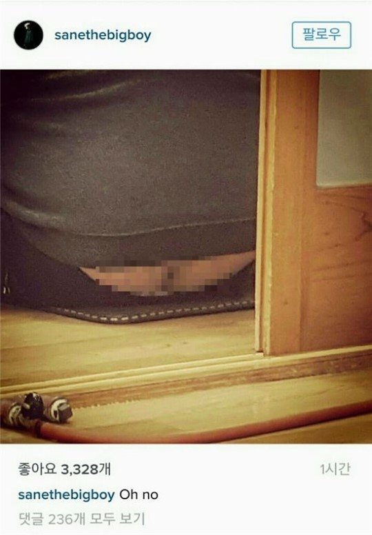 산이는 17일 자신의 SNS에 “Oh no”라는 멘트와 함께 식당에서 찍은 사진 한장을 게재했다.