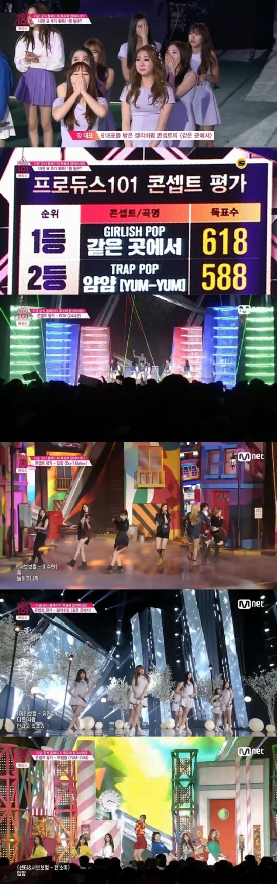 ‘프로듀스 101’ 콘셉트 무대에서 진영 팀이 1등을 차지했다.