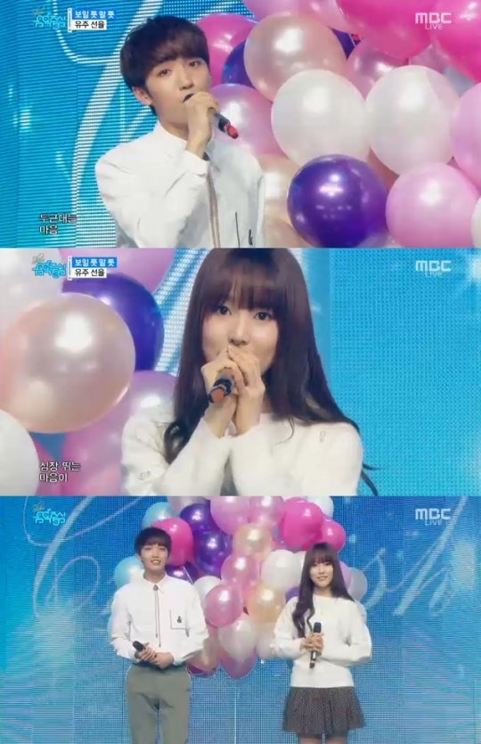 19일 오후 방송된 MBC ‘쇼! 음악중심’에서 유주-선율은 ‘보일 듯 말듯’ 무대를 선보였다.