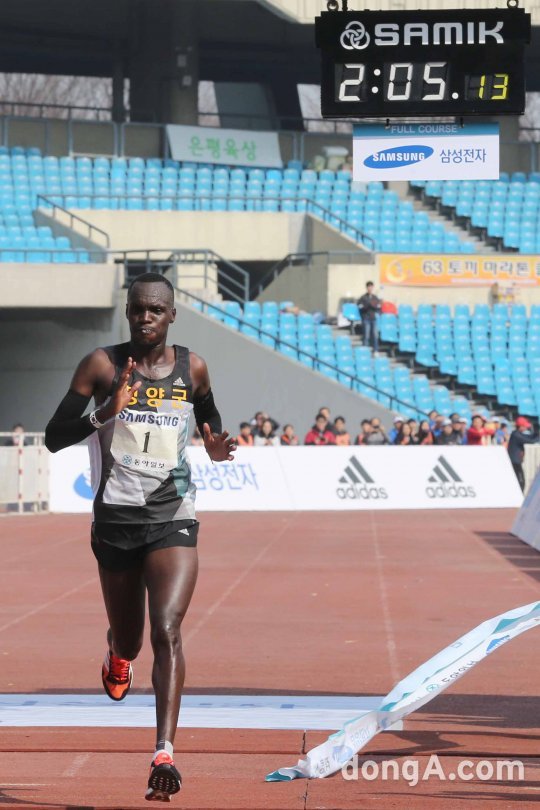 에루페는 20일 오전 서울 종로구 광화문을 출발해 송파구 잠실종합운동장 까지 펼쳐지는 42.195㎞ 풀코스를 2시간5분13초에 돌파에 정상에 올랐다.
