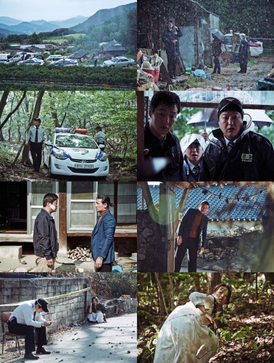 의문의 연쇄 사건으로 인해 발칵 뒤집힌 마을의 모습과 내리는 비 속 현장을 찾은 경찰들의 모습, 산 속에서 무언가를 찾는 이들의 모습이 담긴 스틸은 앞으로 어떤 일이 펼쳐질지 궁금증을 불러일으킨다. 이어 보고도 믿기 어려운 현장 광경에 놀란 ‘종구’와 경찰들의 모습을 담은 스틸은 강한 존재감을 발산하는 곽도원의 모습으로 시선을 사로잡는다. 이번 작품에서 경찰 ‘종구’ 역을 맡은 곽도원은 의문의 사건에 맞닥뜨리면서 점차 혼돈에 빠지는 캐릭터로 중심 축을 이끌며 극을 압도할 것으로 기대를 높인다.