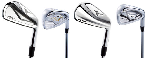 MP-55 단조아이언 (하프 머슬백 타입)-JPX e700 포지드 아이언 (캐비티 타입)-MP-5 단조아이언 (머슬백 타입)-뉴 MX-30 포지드 아이언 (캐비티 타입)(맨 왼쪽부터).