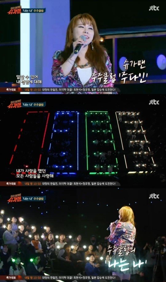 주주클럽은 22일 밤 11시 방송된 JTBC '투유 프로젝트-슈가맨을 찾아서'에 등장해 라이브로 '나는 나'를 열창했다.