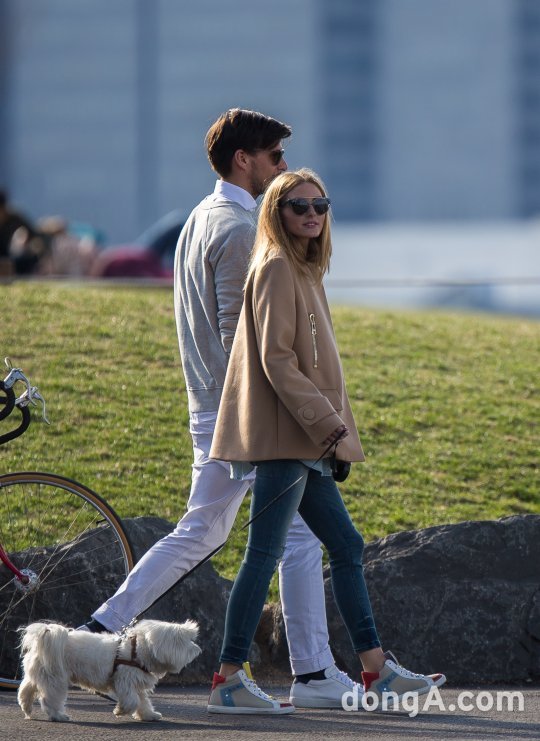 올리비아 팔레르모와 요하네스 휴블은 산책을 위해 평소보단 편안한 차림을 했지만 여전히 세련된 스타일링과 에티튜드로 화보를 방불케 했다.