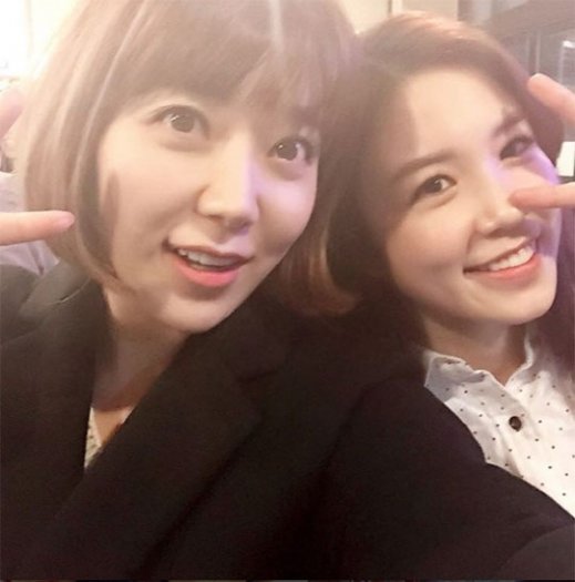 하지영은 24일 자신의 인스타그램에 ‘한밤의 TV연예’ 메인MC 장예원과 다정한 포즈로 촬영한 사진 한 장을 올렸다.