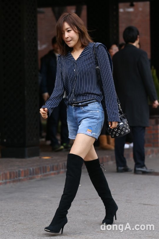 배우 최강희가 24일 오후 서울 용산구 그랜드하얏트 테니스코트에서 열린 정혁서, 배승연 디자이너 ‘SJYP’컬렉션에 참석해 포토타임을 하고 있다.