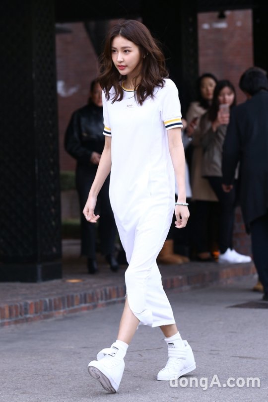 모델 비비안이 24일 오후 서울 용산구 그랜드하얏트 테니스코트에서 열린 정혁서, 배승연 디자이너 ‘SJYP’컬렉션에 참석해 포토타임을 하고 있다.
