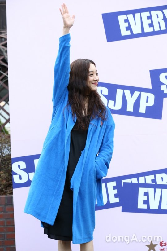 배우 정려원이 24일 오후 서울 용산구 그랜드하얏트 테니스코트에서 열린 정혁서, 배승연 디자이너 ‘SJYP’컬렉션에 참석해 포토타임을 하고 있다.