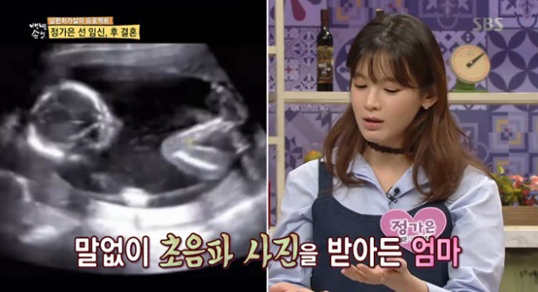 이날 정가은은 혼전 임신에 대해 "초음파 사진을 보여드리며 엄마에게 혼전 임신 사실을 알렸는데 엄마가 사진을 보더니 1분간 멍하니 계시더라"고 운을 뗐다.