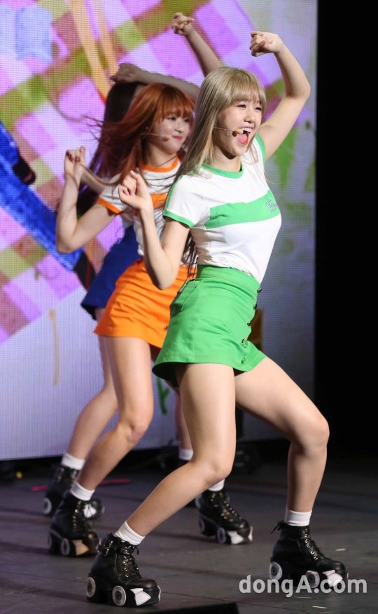 걸그룹 오마이걸의 미미가 28일 오후 서울 마포구 메세나폴리스 롯데카드 아트센터에서 열린 새번째 미니앨범 ‘핑크 오션(Pink Ocean )’ 발매 쇼케이스에서 화려한 무대를 선보이고 있다.