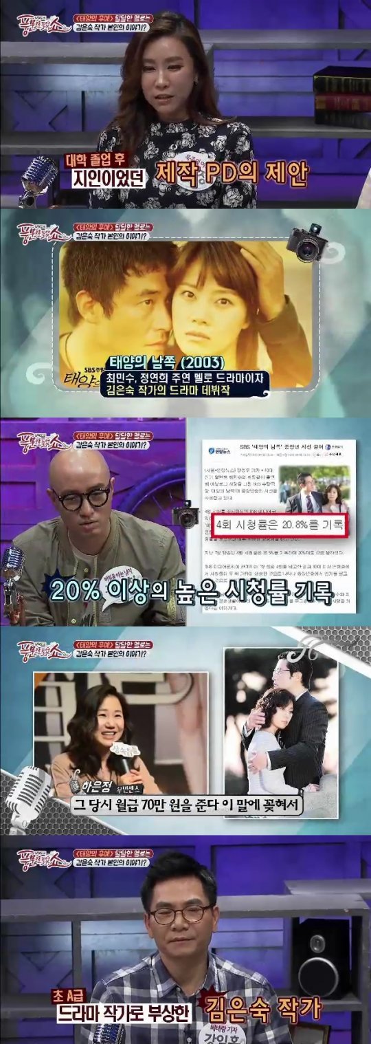 이날 한 기자의 말에 따르면 김은숙 작가는 대학 졸업 후 지인이었던 제작 PD의 제안으로 작품을 쓰게 됐다. 당시 김은숙 작가는 월급 70만 원을 준다는 말에 작가를 시작하게 됐다고 했다.