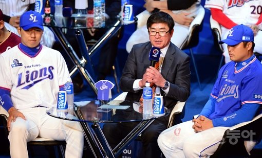 28일 서울 블루스퀘어 삼성카드홀에서 ‘2016 타이어뱅크 KBO리그’ 미디어데이가 열렸다. 삼성 류중일 감독(가운데)이 개막을 앞두고 출사표를 밝히고 있다. 김민성 기자 marineboy@donga.com