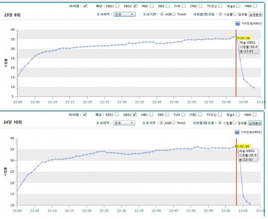 무엇보다 인상적인 건, 방송이 시작된 직후 30% 가까이 가파르게 솟아오른 실시간 시청률 그래프가 방송이 끝날 때까지 유지된다는 점. 한 번 보면 벗어날 수 없는 ‘리모컨 붙박이’인 셈이다. 그렇다면 방송 중에 채널이 돌아가지 않는다는 이유는 무엇일까.