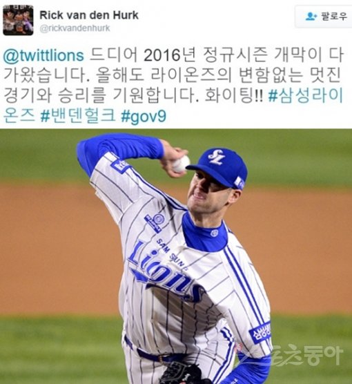 밴덴헐크는 29일 자신의 트위터에 한글로 “드디어 2016년 정규시즌 개막이 다가왔습니다. 올해도 라이온즈의 변함없는 멋진 경기와 승리를 기원합니다. 파이팅”이라는 글을 남겼다.