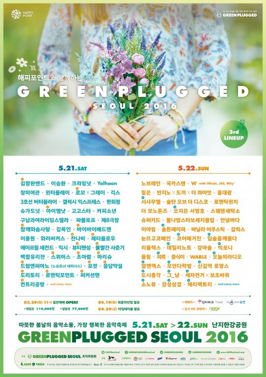 한편 그린플러그드 서울은 4월 19일 최종라인업을 발표하며, 타임테이블은 4월 29일에 공개된다. 예매는 인터파크와 예스24를 통해 진행중이다.