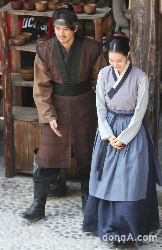 배우 고수(왼쪽)와 진세연이 30일 오후 경기 용인 대장금파크 옥중화 세트 내 전옥서 마당에서 열린 MBC 새 드라마 '옥중화' 고사 현장공개에 참석하고 있다.
