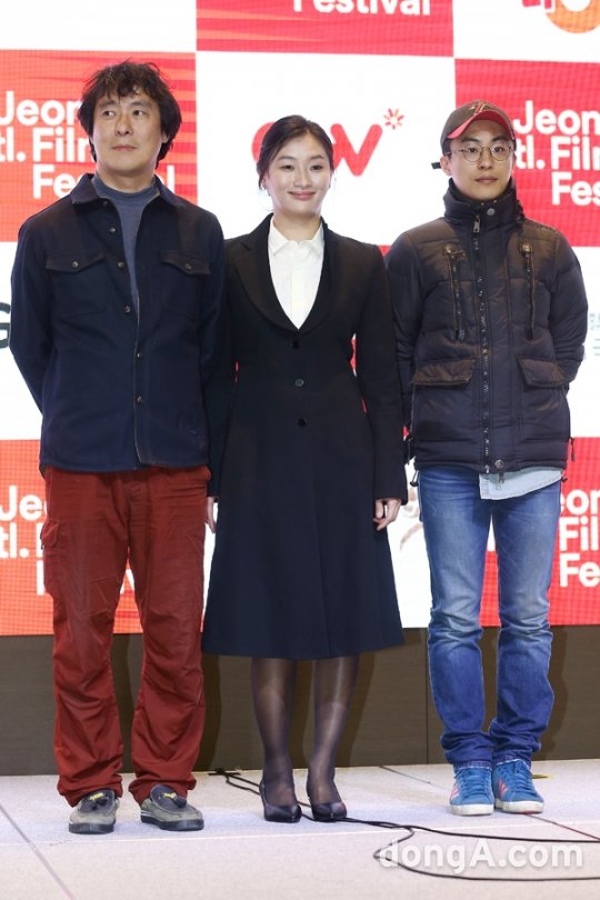 김수현 감독과 배우 구교환, 김상현이 29일 오후 서울 영등포구 글래드호텔에서 열린 ‘제17회 전주국제영화제 상영작 발표 기자회견’에 참석해 포토타임을하고 있다.