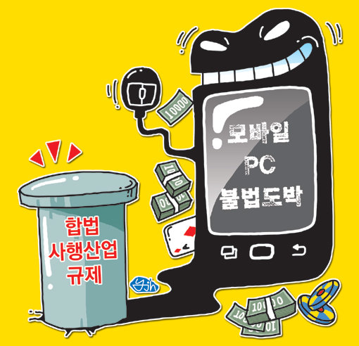 우리나라 불법도박 시장 규모는 한해 101조∼160조원(2014년 추정치)으로 카지노 경마 경륜 복권 등 합법적인 사행사업의 매출보다 8배 이상 더 크다.