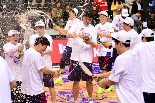 김동욱은 챔프전 마지막 경기가 된 6차전에서 3쿼터까지 혼자 21점을 넣었다. 이번 시리즈 개인 한 경기 최다득점을 3쿼터까지 이미 넘어섰다. 폭풍처럼 터지는 김동욱의 득점에 KCC는 일찌감치 두 손을 들었다. 김동욱은 “전주에 다시 가기 정말 싫었다. 그래서 시작부터 마음먹고 공격했는데 잘 됐다”며 크게 웃었다. 그는 뒤풀이에서도 거세게 달렸다.