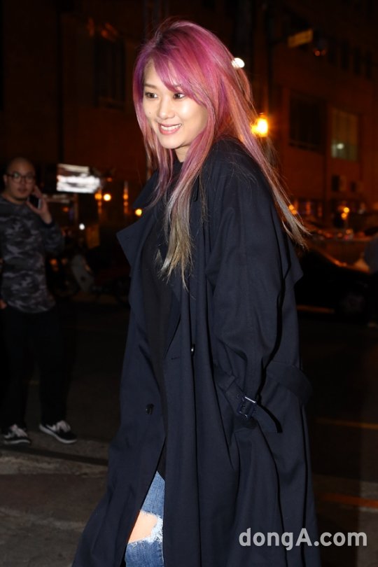 배우 현쥬니가 1일 오후 서울 강남구 한 식당에서 열린 KBS 수목드라마 ‘태양의 후예’ 회식에 참석하고 있다.
