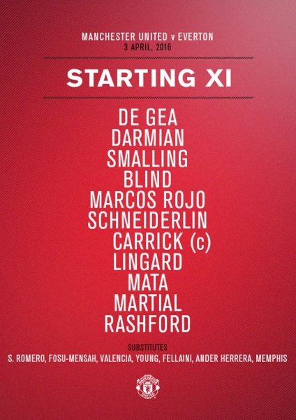 이날 맨유는 신예 공격수 마커스 래시포드를 최전방에 배치했다. 중원에는 모르강 슈나이덜린, 마이클 캐릭, 제시 린가드, 앙소니 마샬, 후안 마타가 나선다.