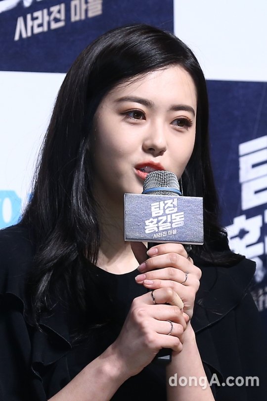 배우 고아라가 4일 오전 서울 강남구 압구정CGV에서 열린 영화 ‘탐정 홍길동’ 제작발표회에 참석해 질문에 답하고 있다.
