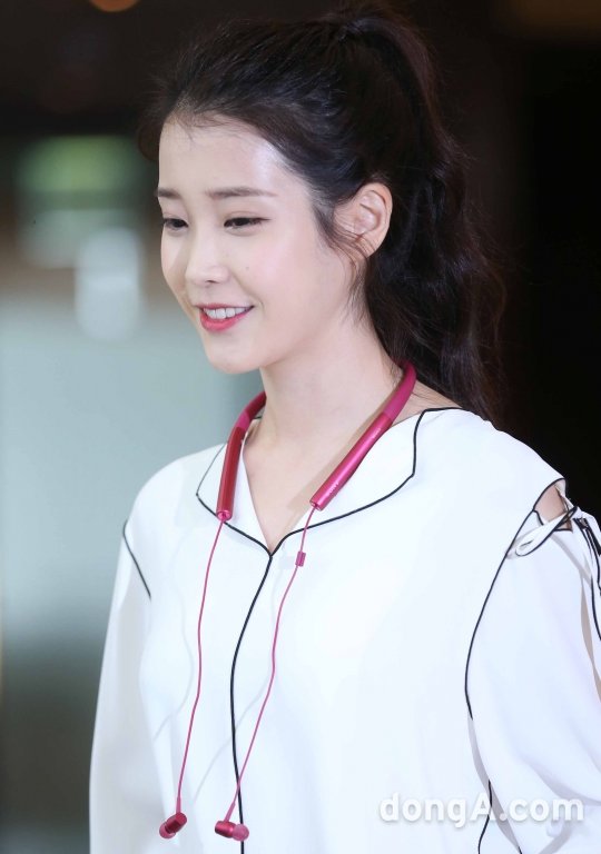 가수 아이유가 5일 오전 서울 중구 웨스틴조선호텔에서 열린 소니코리아 블루투스 오디오 ' h.ear' 신제품 출시 행사에 참석하고 있다.