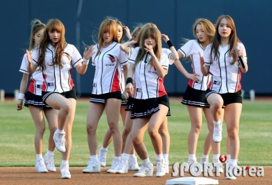 5일 오후 수원 kt 위즈파크에서 열린 `2016 프로야구` kt 위즈 대 삼성 라이온즈의 경기에 앞서 걸그룹 우주소녀가 멋진 축하 공연을 펼치고 있다.