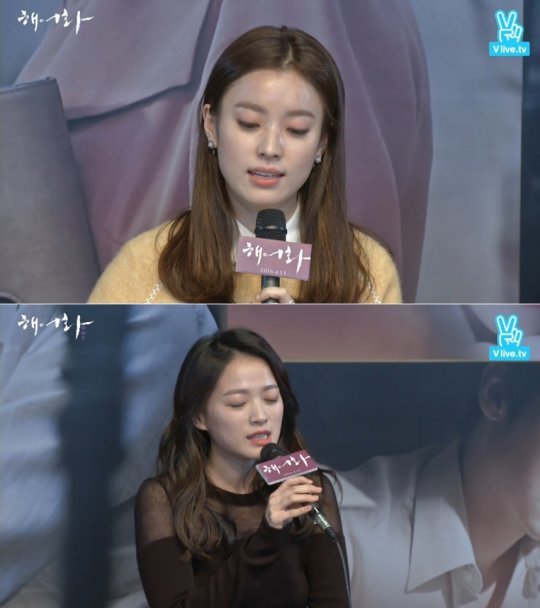 한효주와 천우희는 6일 오후 9시 네이버 V앱을 통해 생중계된 영화 ‘해어화’ 무비토크에서 노래 요청을 받았다.