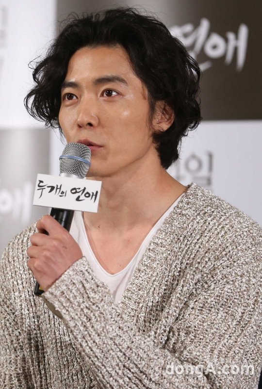배우 김재욱이 8일 오후 서울 용산 한 멀티플렉스관에서 열린 영화 두개의 연애 언론시사회에서 인사말을 하고 있다.