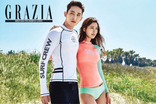 연기자 이수혁과 수현이 함께한 패션지 래시가드 화보가 공개됐다.