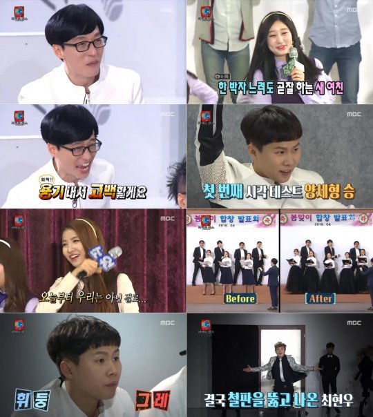 다음 타자로 사과 먹기에 나선 양세형은 가뿐히 성공했다. 이어 정준하가 사이다 마시기에 도전했다. 뚜껑을 열다 한 차례 쟁반을 맞은 그는 결국 터져 나오는 트림을 참지 못하고 쟁반 세례를 맞았다. 지코는 총각김치를 먹다 의외로 양념을 빠는 과정에서 쟁반을 맞아 웃음을 자아냈다.