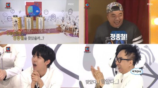 또 다른 테스트 ‘히든 사운드’에서는 개그맨 정종철과 기계음을 듣고 진짜를 맞히는 테스트와 김학도 정성호 안윤상의 성대모사와 진짜 가운데 진짜를 맞히는 테스트가 펼쳐져 흥미를 더했다. 이후 미각 후각 촉각 테스트 끝에 지코가 최종 승리했다.