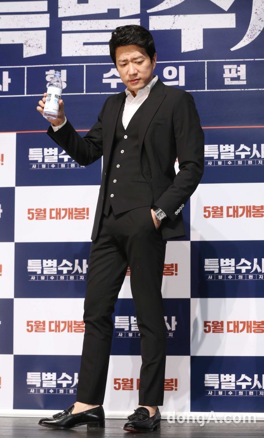 배우 김명민이 10일 오전 서울 강남구 압구정의 한 멀티플렉스관에서 열린 영화 ‘특별수사:사형수의 편지’ 제작보고회에서 포토타임을 하고 있다.