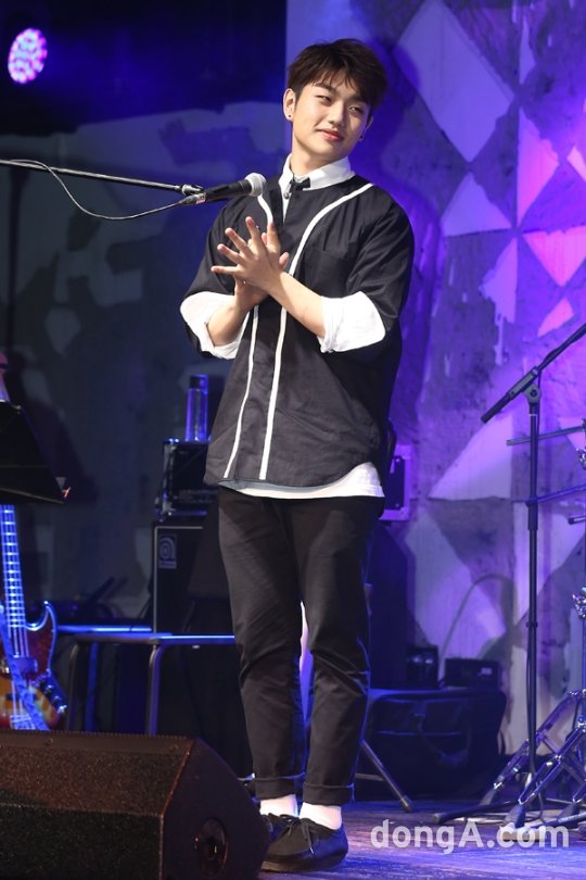 가수 샘김이 11일 오후 서울 용산구 현대카드 언더스테이지에서 열린 데뷔 앨범 ‘아이엠 샘’ 쇼케이스에서 질문에 답하고 있다.