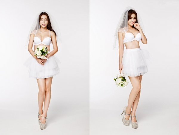홍진영은 레이스 디테일로 절제미를 살려 신부의 매력을 돋보이게 하는 ‘화이트 웨딩 속옷 세트’를 입고, 자연스러운 볼륨 몸매로 웨딩 속옷 스타일을 제시하며 연예계 대표 청순 섹시 아이콘으로서의 진가를 입증했다.