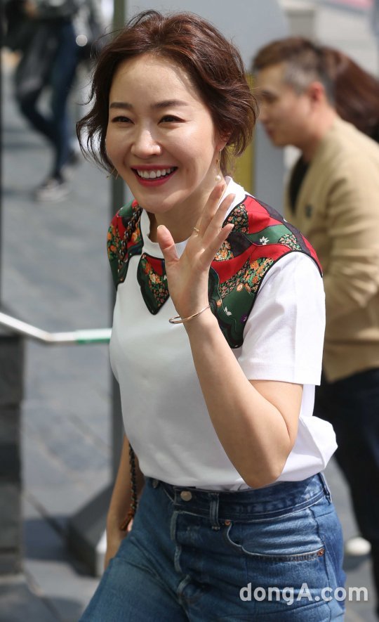 배우 엄지원이 14일 오후 서울 강남구 압구정 갤러리아백화점 앞에서 열린 브랜드 코치 1941 스토어 오픈 행사에 참석하고 있다.