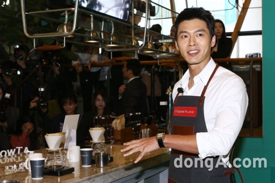 배우 현빈이 15일 오전 서울 강남구 투썸플레이스 신논현역점에서 열린 ‘1일 투썸 바리스타 현빈과 함께 특별한 커피를 만나다!’ 행사에 참석해 바리스타 체험을 하고 있다.