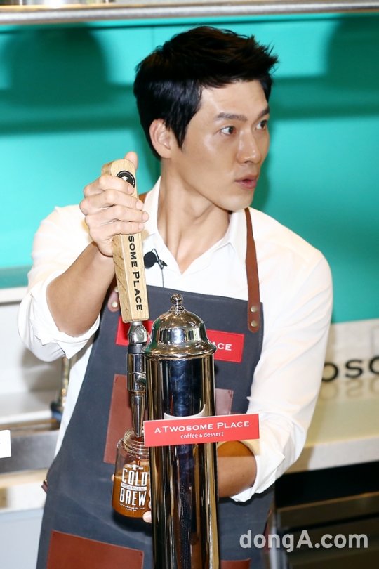 배우 현빈이 15일 오전 서울 강남구 투썸플레이스 신논현역점에서 열린 ‘1일 투썸 바리스타 현빈과 함께 특별한 커피를 만나다!’ 행사에 참석해 바리스타 체험을 하고 있다.