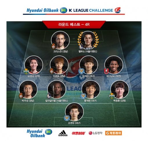 한편 현대오일뱅크 K리그 챌린지 라운드 MVP에는 13일 부산 아이파크를 상대로 2골을 기록하며 2-1 승리를 이끈 벨루소(서울이랜드FC·28)가 선정됐다.